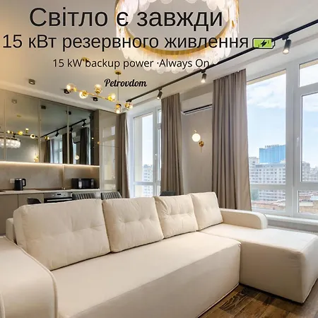 11-157 Zhemchuzhina 38, Zhylianska 68, Kyiv Centre, Panoramic City View, 15 Kw Backup Power, Petrovdom Apartment розташовані приблизно за 25 хвилин пішки від Міжнародного центру культури і мистецтв. Wi-Fi надається як для роботи, так і для відпочинку.